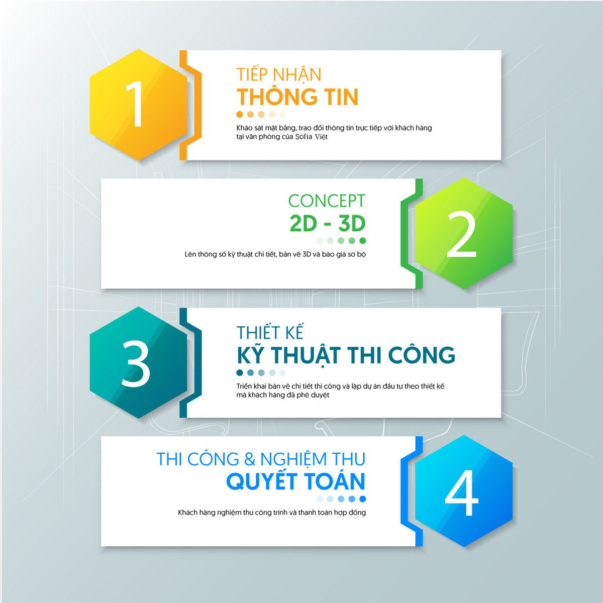 Sofia Việt là đơn vị chuyên cung cấp dịch vụ thiết kế và thi công chuyên nghiệp với quy trình rõ ràng, điều khoản hợp đồng minh bạch và báo giá chính xác